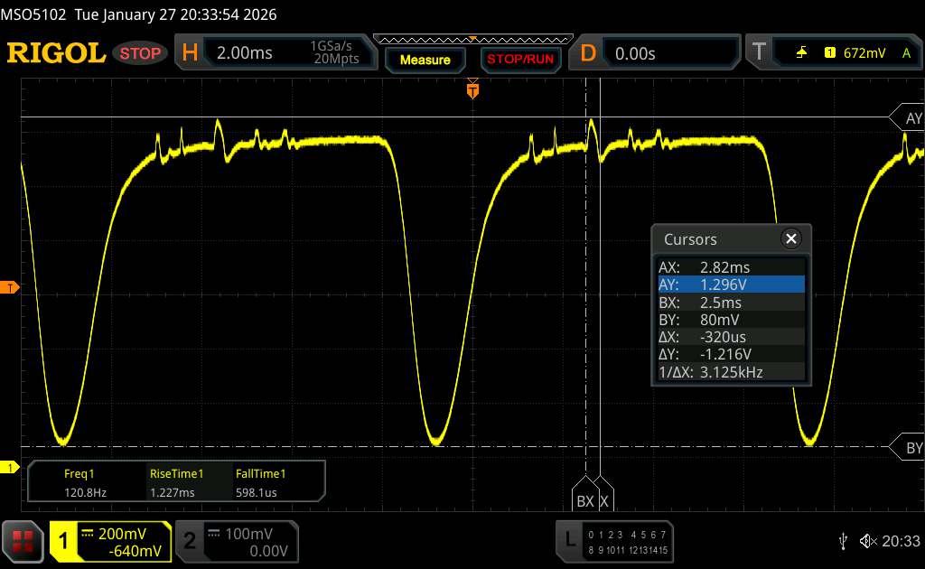 | Screen flickering / PWM waargenomen | 120 Hz Amplitude: 13.7 % Secondary Frequency: 3125 Hz | ||