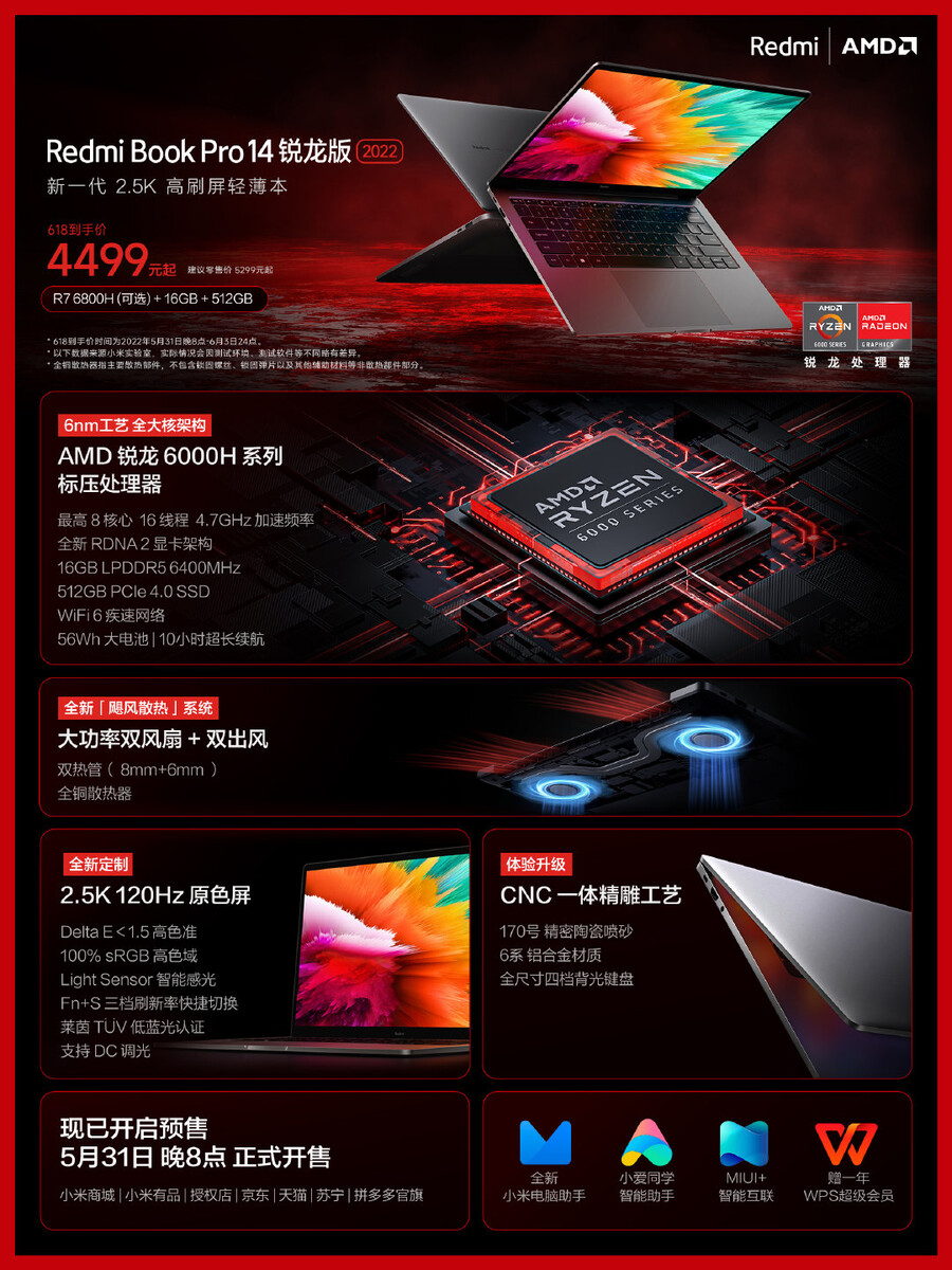 Xiaomi heeft de RedmiBook Pro 14 2022 Ryzen Edition geïntroduceerd, een laptop die het bedrijf begon te teasen eerder deze week. Zoals verwacht, vertrouwt de RedmiBook Pro 14 2022 op AMD 6000H-serie APU's, een enorme verbetering ten opzichte van de Ryzen 5 5500U en Ryzen 7 5700U gevonden in het model van vorig jaar. Beter nog, Xiaomi heeft de 14-inch laptop uitgerust met 45 W APU's, niet 35 W alternatieven zoals de Ryzen 5 6600HS.