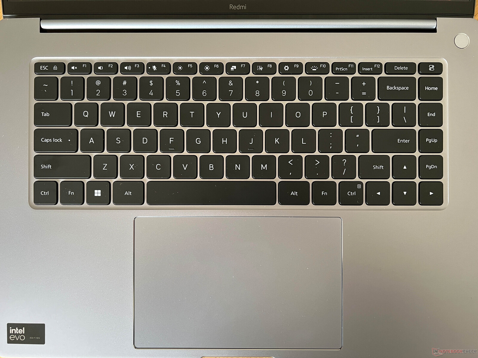 De RedmiBook Pro 16 heeft een zwart chiclet-toetsenbord met witte verlichting in drie stappen. De kwaliteit van het toetsenbord laat een zeer goede indruk achter, biedt een lange toetsaanslag en nauwkeurige type-ervaring, en de toetsen klapperen ook niet. Dit is dus een erg goed toetsenbord, en we verkiezen het ook boven dat van de Lenovo IdeaPad Pro 5 16 (review wordt binnenkort gepubliceerd). Hoewel ons testtoestel geen speciaal cijferblok heeft, zijn er wel grote pijltjestoetsen en speciale toetsen voor PgUp/PgDn. De aan/uit-knop bevindt zich rechtsboven buiten het toetsenbordgedeelte en bevat ook de vingerafdruksensor.