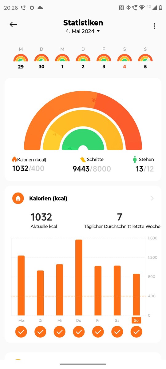 Activiteitsdoelen - Smart Band 8 Pro berekent gemiddelde waarden