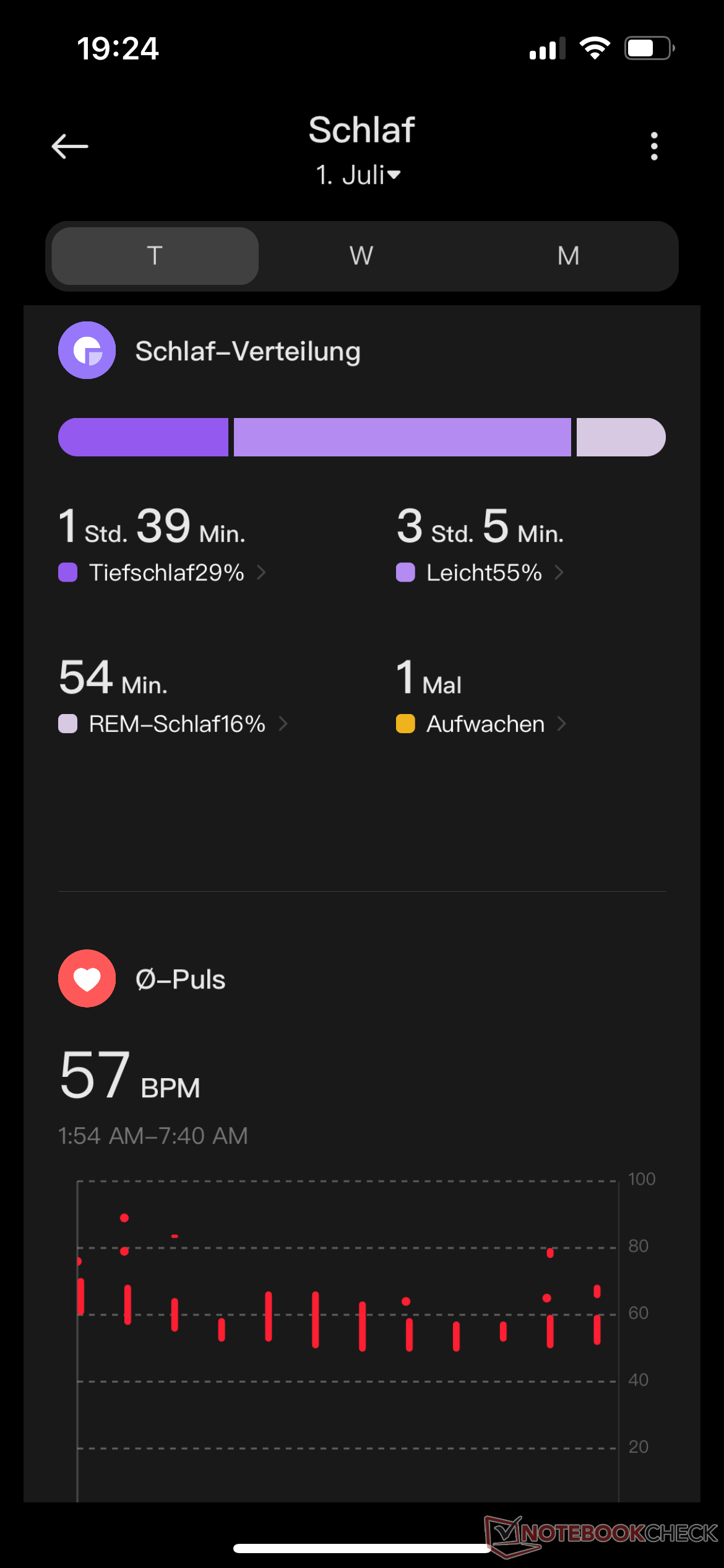 Na het ontwaken geeft de smartwatch een eerste overzicht van de slaapkwaliteit. Meer gedetailleerde inzichten in slaapfasen en worden verstrekt door de app. Helaas is er geen intelligent alarm afhankelijk van de slaapfase.