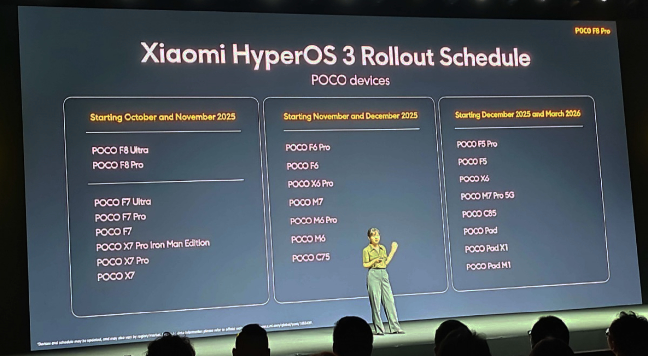 We sluiten dus niet uit dat Xiaomi HyperOS 3 aanbiedt als een day-one patch voor beide apparaten. Ondertussen zal de Pad M1 en Pad X1 op z'n vroegst tot maart 2026 op HyperOS 2 builds blijven staan. Voor zover wij kunnen nagaan, heeft Xiaomi de uitroltijden van de andere negentien Poco-toestellen, die al gegarandeerd HyperOS 3-upgrades zouden ontvangen, niet gewijzigd. Zie de afbeelding hieronder voor meer details.