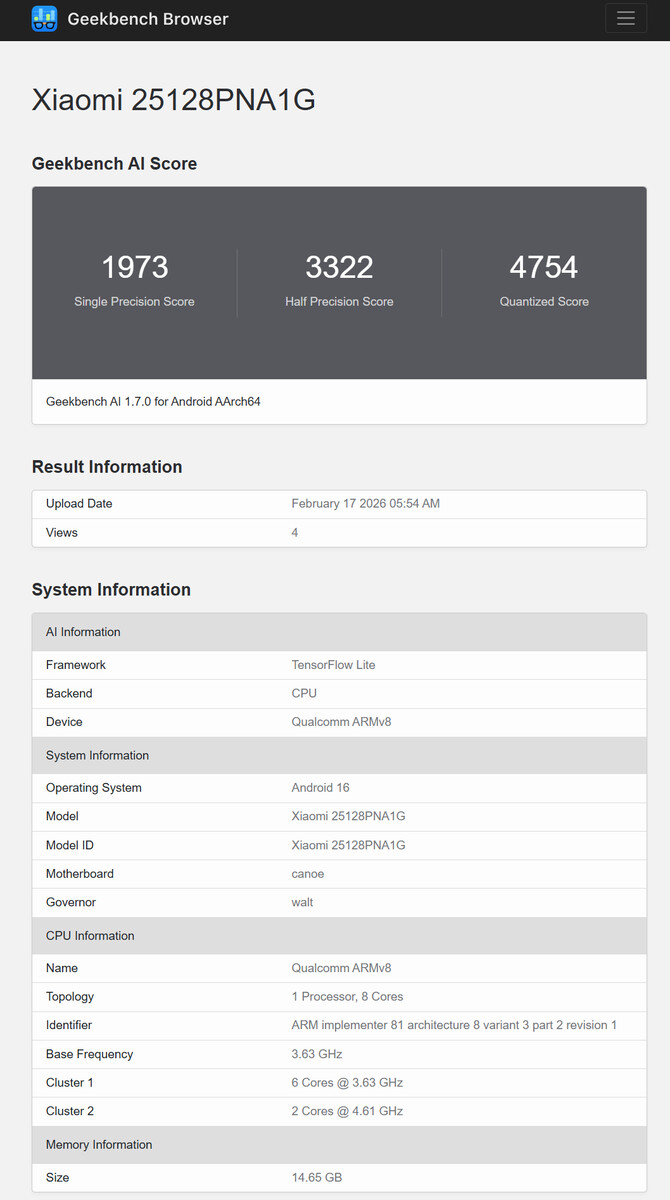 Onlangs hebben lekken zich gericht op de wereldwijde beschikbaarheid van de Xiaomi 17 en Xiaomi 17 Ultra. Kort gezegd verwachten verschillende bronnen dat het paar de prijzen van de Xiaomi 15 Ultra en zijn kleinere broer (momenteel $809 op Amazon). Hoewel equivalente details over de Leica Edition vooralsnog onbekend blijven, is de wereldwijde versie eindelijk op Geekbench verschenen onder het modelnummer 25128PNA1G.