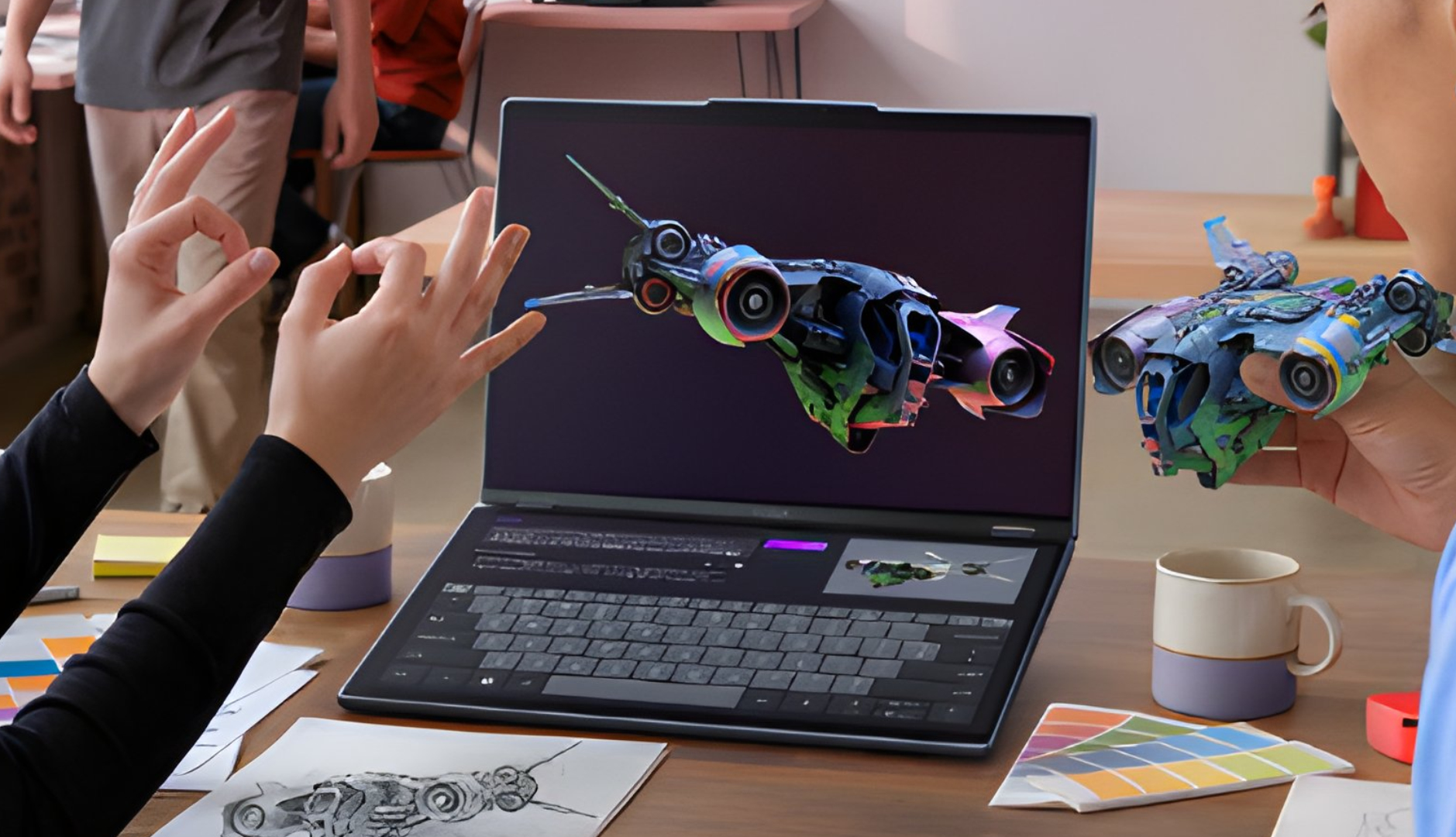 Volgens de leaker bereidt Lenovo zich voor op een nieuw concept in dezelfde lijn als de Yoga Book 9i of Asus' Zenbook Duo (momenteel $2.299,99 op Amazon). Zoals de onderstaande tweet laat zien, heeft Blass verschillende promotiefoto's in handen gekregen van een apparaat dat hij de Yoga Book Pro 3D noemt.