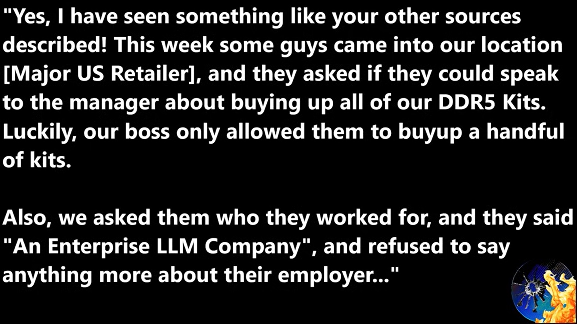 Volgens Moore's Law Is Deadhamstert OpenAI niet alleen het grootste deel van de wereldwijde geheugenvoorraad, maar zou het bedrijf ook DDR5-kits voor consumenten opkopen. OpenAI werknemers lopen naar verluidt winkels binnen en proberen zoveel mogelijk DDR5-kits in handen te krijgen. De informatie kwam naar MLID via verschillende bronnen, waaronder detailhandel en RAM-leveranciers.