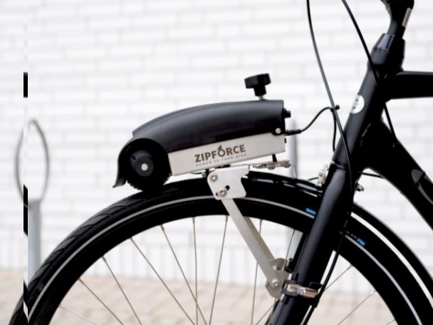 De Zipforce draagbare elektrische motor kan een standaard fiets veranderen in een e-bike. Het apparaat kan je ondersteunen bij snelheden tot 25 km/u (~16 mph) en kan aan de voor- of achterkant van je fiets worden bevestigd. Zipforce suggereert dat de gadget handig kan zijn voor pendelaars die zich niet in het zweet willen werken op weg naar kantoor.