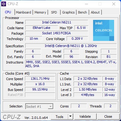 | Gemiddeld Intel Celeron N6211 (n=1) | |