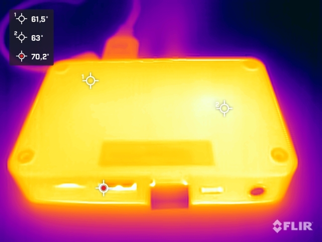 (-) De maximumtemperatuur aan de bovenzijde bedraagt 69.5 °C / 157 F, vergeleken met het gemiddelde van 36 °C / 97 F, variërend van 21.6 tot 69.5 °C voor de klasse Mini PC.