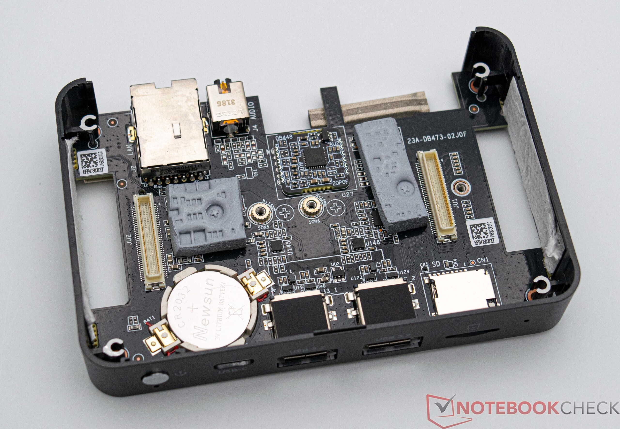 De efficiënte SoC is uitgerust met de Intel Core i3-N300 en biedt acht native rekenkernen. De vermogenslimieten van de processor zijn ingesteld op een stroomverbruik van 7 tot 25 watt. Tijdens onze tests kwamen we niet in de buurt van de maximale vermogenslimiet. De SoC wordt ondersteund door 8 GB LPDDR5 RAM, dat op de printplaat is gesoldeerd. De SSD is een 512 GB model, wat een geschikte opslagcapaciteit is.