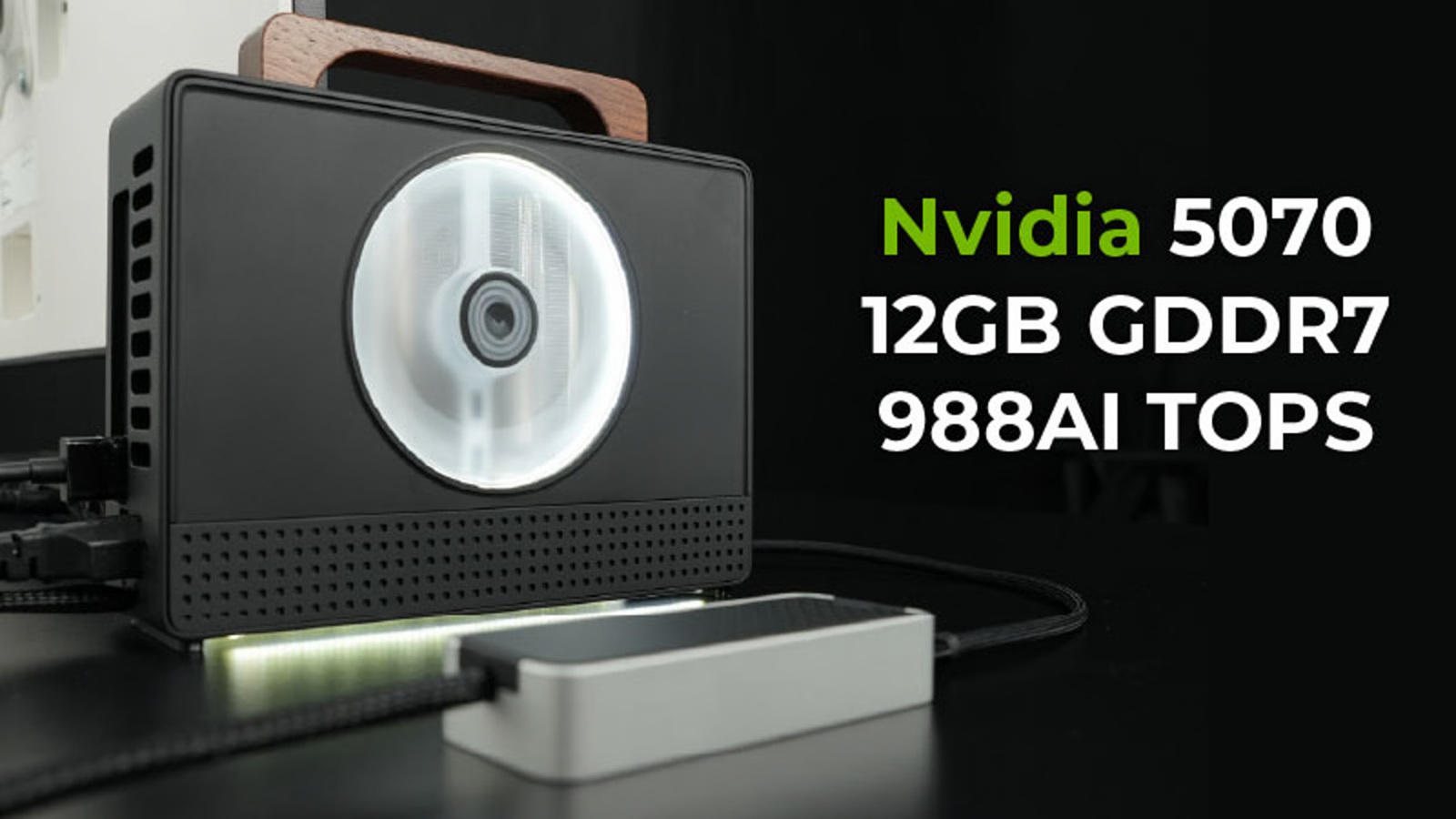 De samenvatting van de campagne die wordt weergegeven door Backerkit vermeldt Nvidia GeForce RTX 5070 en RTX 5060 Ti configuraties, een behuizing van 1,86 liter, achterwaartse compatibiliteit en een topscore van 988 AI TOPS. FabScene meldt dat de RTX 5060 Ti versie 16 GB GDDR7 geheugen heeft, terwijl het RTX 5070 model geleverd wordt met 12 GB GDDR7. Datzelfde rapport zegt dat de 5060 Ti versie meer gericht is op creators en lokale AI workloads, terwijl de RTX 5070 meer gericht is op gaming.