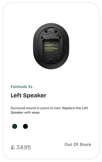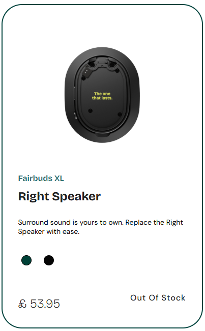 Ondertussen zijn er al veel vervangende onderdelen verschenen op de online winkel van Fairphone. Een paar nieuwe drivers voor beide Fairbuds XL-modellen kost bijvoorbeeld €101,90 / £88,90, waarbij de rechter driver iets meer kost omdat deze een deel van de elektronica bevat. Andere vermelde onderdelen zijn een vervangende batterij (€19,95 / £17,95), oorkussentjes (€14,95 / £12,95), evenals de nieuwe hoofdband, kabel en stoffen hoofdbandhoes, met prijzen variërend van €15 / £13 tot €20 / £18