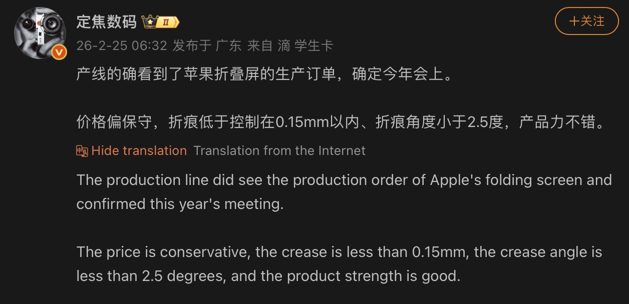 Een recent lek, gedeeld door Fixed Focus Digital via Weibo heeft een paar interessante details aan het licht gebracht over het kreukvrije display van de iPhone Fold. Volgens hem is de lancering van het product dit jaar bevestigd en zijn er al productieorders geplaatst.