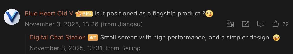 Schrijvend op Weibobeweert tipgever Digital Chat Station dat de iQoo 15 Mini de testfase is ingegaan. Hij wordt momenteel aangedreven door de Dimensity 9500+ chipset, naar verwachting de overgeklokte versie van de Dimensity 9500.